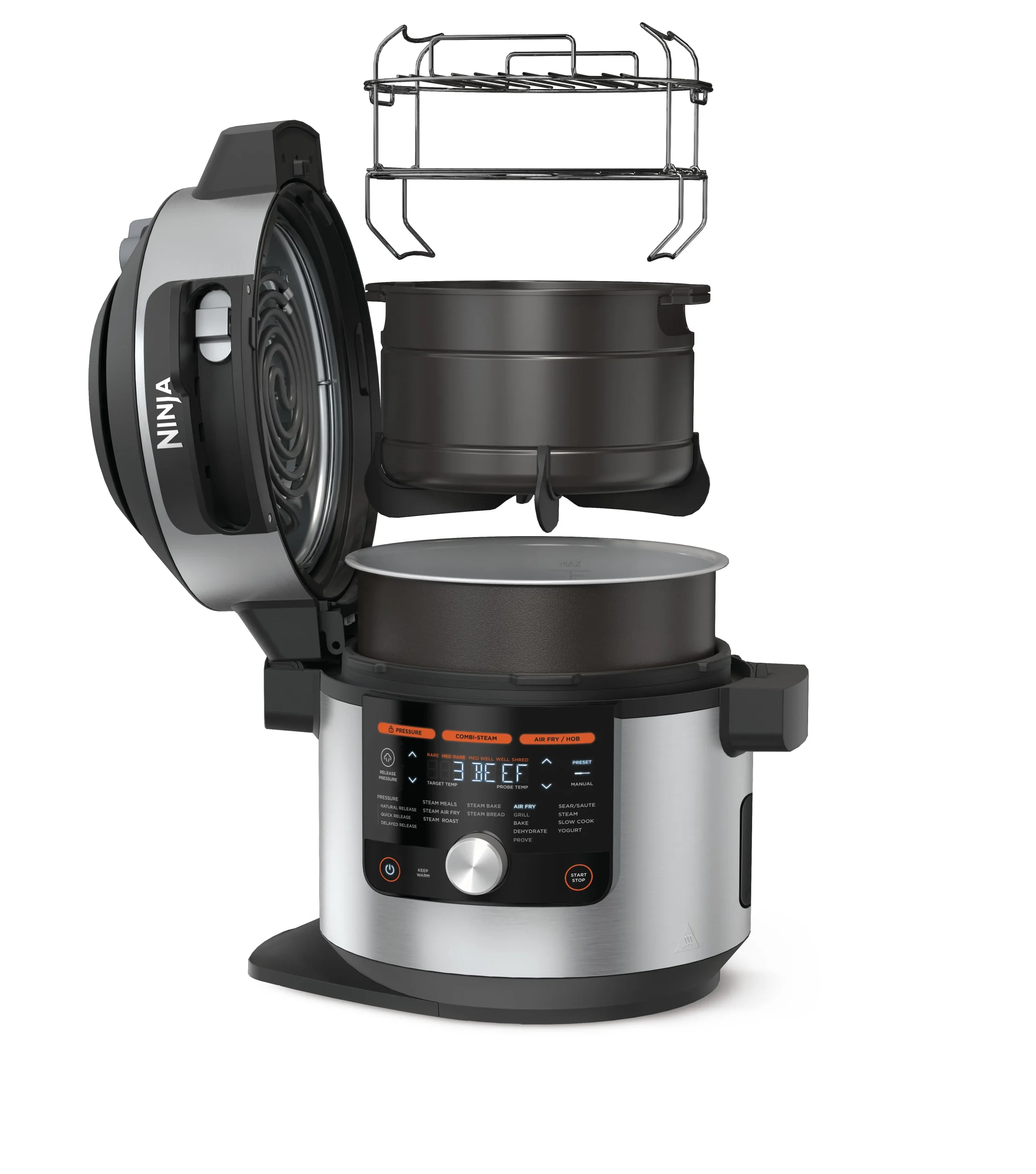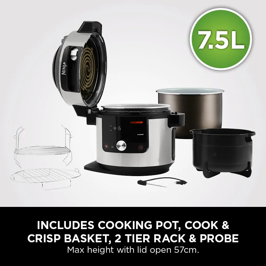 مولتی کوکر نینجا مدل OL750 با توان مصرفی 1760 وات، از 3 عملکرد مهم آرام پز، بخار پز و زودپز برخوردار میباشد. همچنین دارای قابلیت سرخ کردن و ماست سازی است.