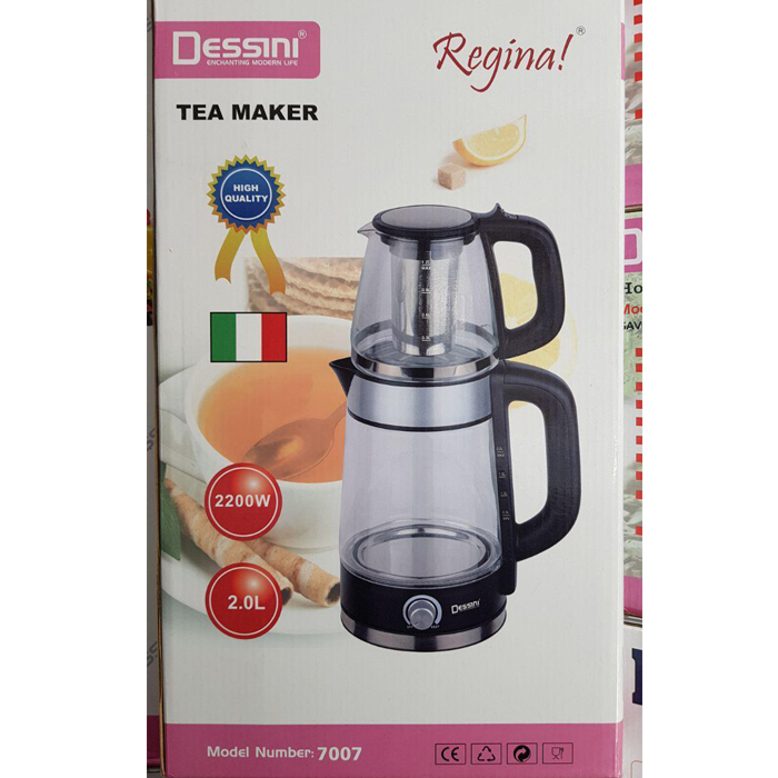 چای ساز دسینی مدل 7007 دستگاهی منحصر به فرد و کاربردی است که تهیه آب جوش و چای را به سرعت و در کمترین زمان، ممکن می سازد. این محصول متشکل از سه بخش قوری، کتری و پایه است، بطوریکه قوری و کتری بر روی هم، قرار می گیرند. در طراحی چای ساز Dessini 7007 از ترکیب شیشه، فلز و پلاستیک مقاوم در برابر حرارت استفاده شده و کتری با هر بار پر شدن امکان تهیه آب جوش به میزان 2 لیتر را فراهم میکند. لازم به توضیح است، کتری با بهره گیری از توان حرارتی بالا، ظرف مدت کمی آب را به دمای جوش می رساند، سپس میزان مصرف را کم کرده و آب را در حالت گرم نگهدارنده قرار می دهد و بدین ترتیب چای درون قوری با حفظ طعم و رنگ، به آرامی دم خواهد کشید. قوری از جنس شیشه با ظرفیت 1.2 لیتر به این دستگاه اختصاص داده شده و در داخل آن فیلتری فلزی جای گرفته که مانع از خروج تفاله چای می گردد. همچنین قرارگیری کتری بر روی پایه از هر زاویه ای، استفاده از آن را برای افراد راست و یا چپ دست آسانتر کرده است. دسینی ( Dessini ) شرکت ایتالیایی است که با تولید محصولات با کیفیت و متنوع در زمینه لوازم خانگی، نقش بسزایی را در بازار داخل و خارج از کشور ایفا می کند. گفتنی است، بسیاری از کالاهای این برند در کشورهایی همچون ایران، ایتالیا، ترکیه و اسپانیا با بهترین کیفیت و متریال نیز ساخته و عرضه می شوند.
